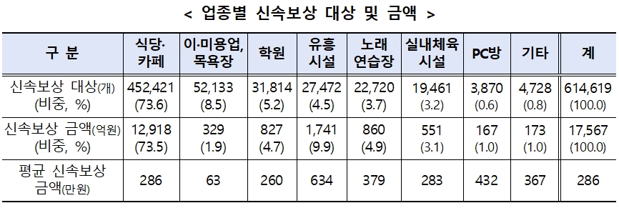 신속보상 대상자인 62만명에게는 이날과 28일 이틀간 오전 8시부터 신청 안내문자가 발송됩니다. 이날은 사업자 등록번호 끝자리가 홀수인 31만명, 28일은 짝수인 31만명이 대상입니다.